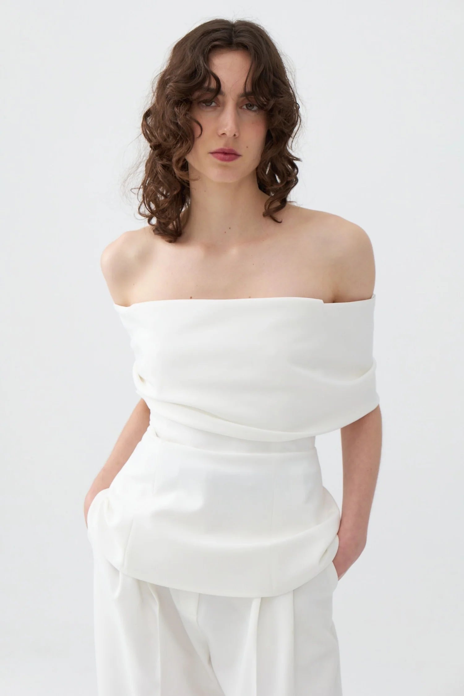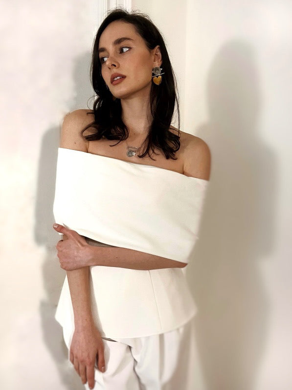 Off The Shoulder Blouse pairs nicely with jeans, joggers, shorts, or skinny pants. Complement it with skinny jeans and high heels for a chic look. This slim-fit blouse features a perfect fit, a metal zipper closure at the back, open shoulders, and a layered collar.