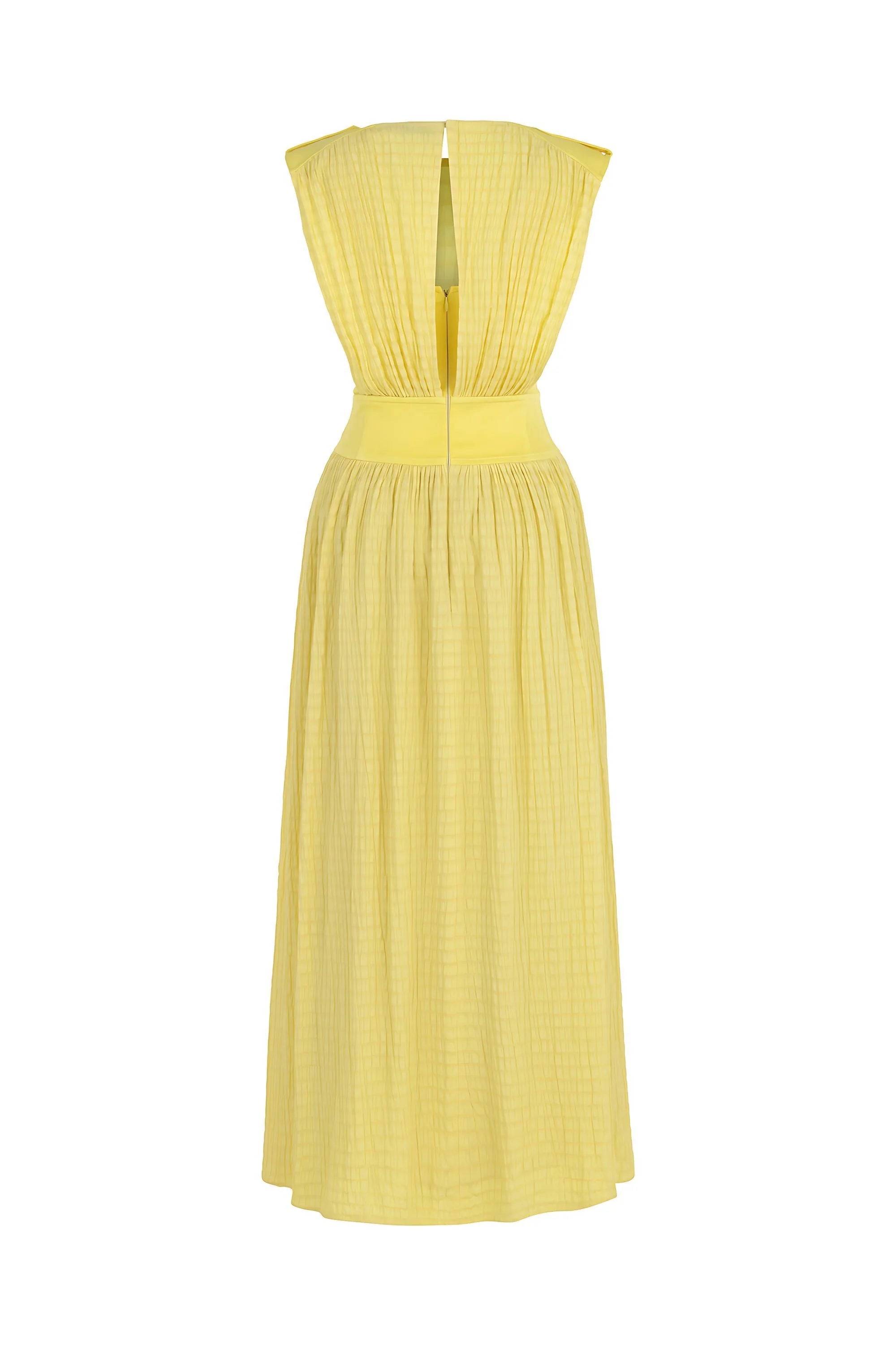 Sweet meets sassy in this sleeveless dress cut to an ankle length and served with a cut-out detail.