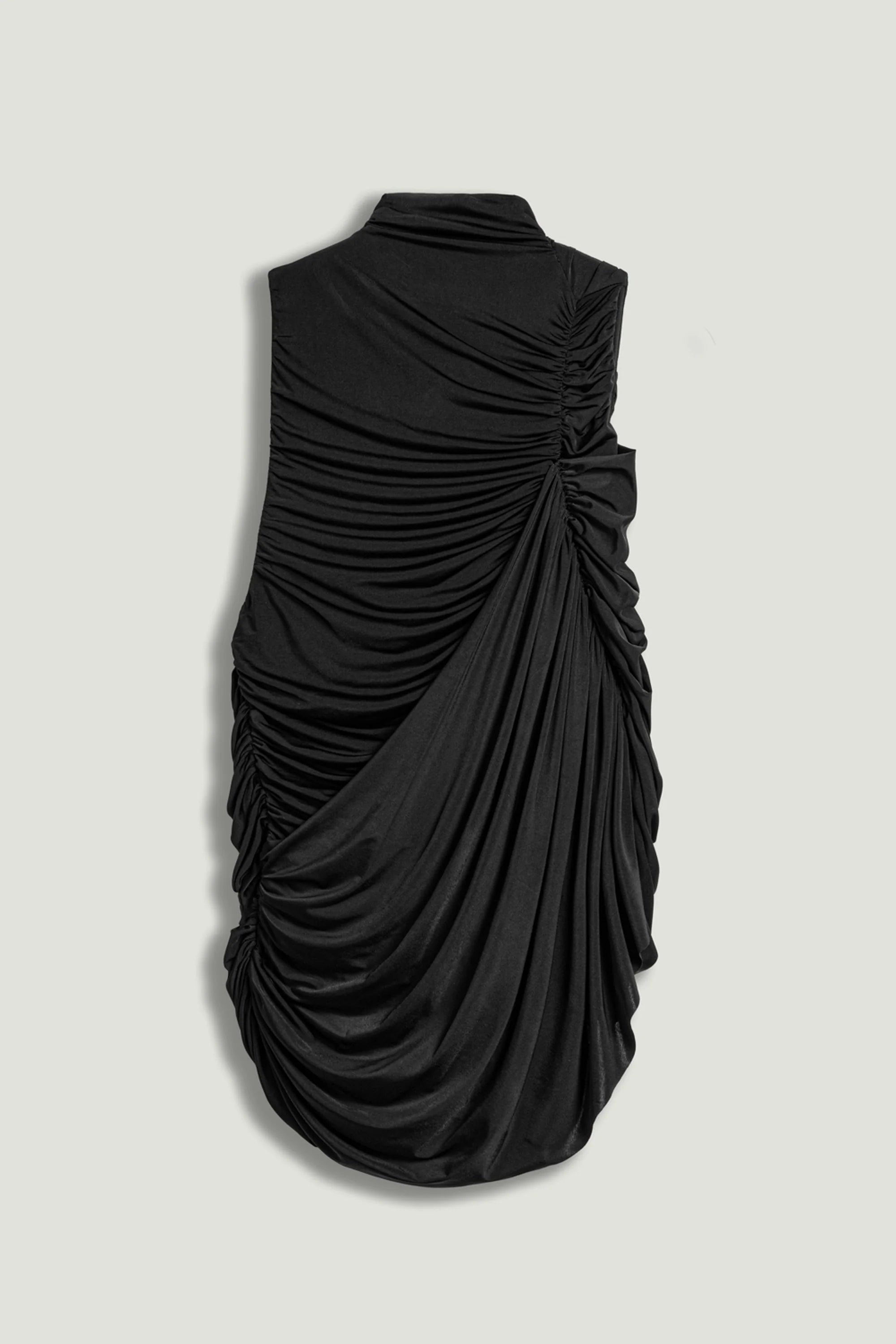 A statement blouse with an asymmetric draped silhouette, ideal for elevating evening looks when styled with fluid pants or a sleek skirt.