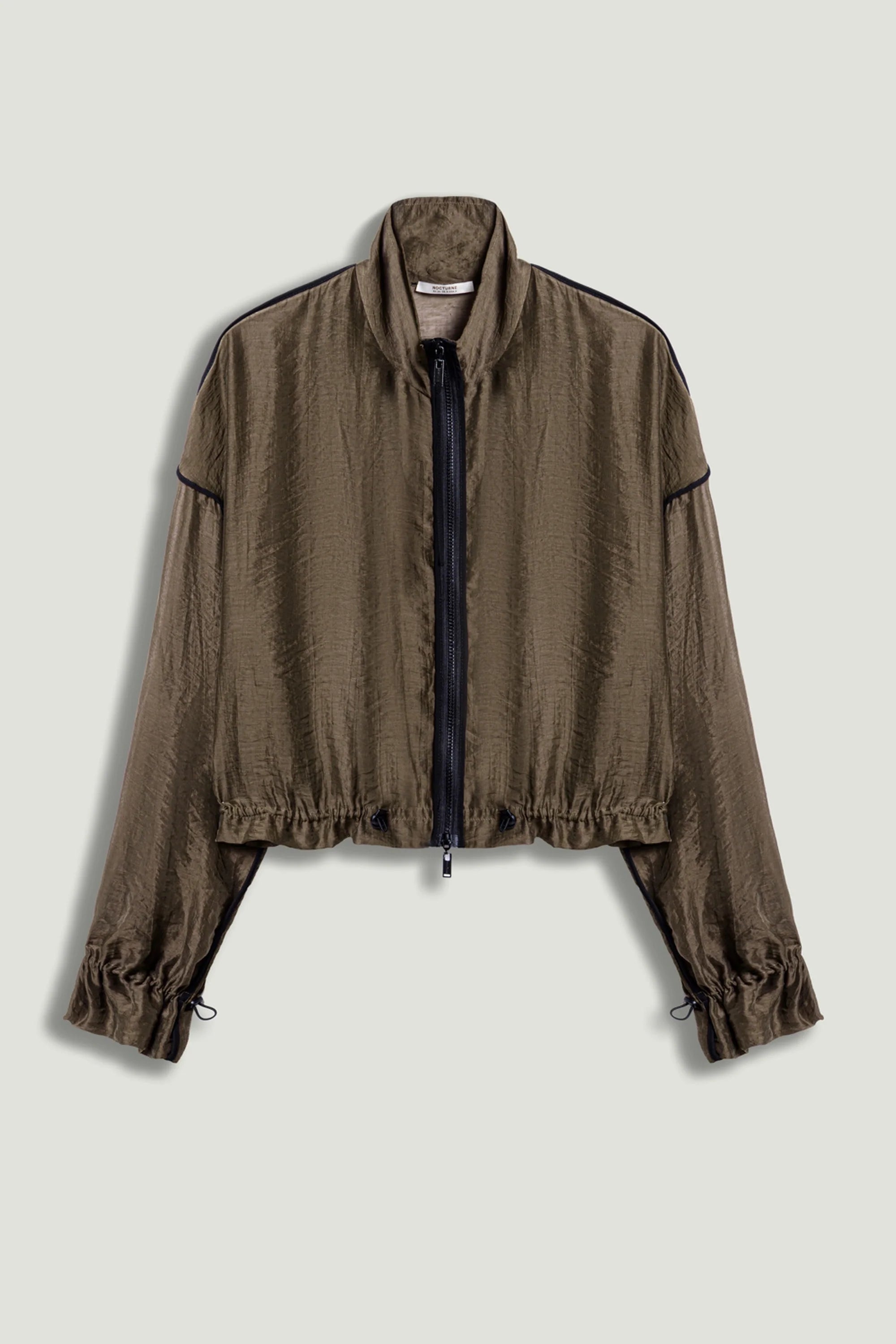 A lightweight sheer jacket with a relaxed silhouette, designed for effortless layering. The subtle transparency and soft structure create a modern, versatile piece that transitions easily from day to evening.