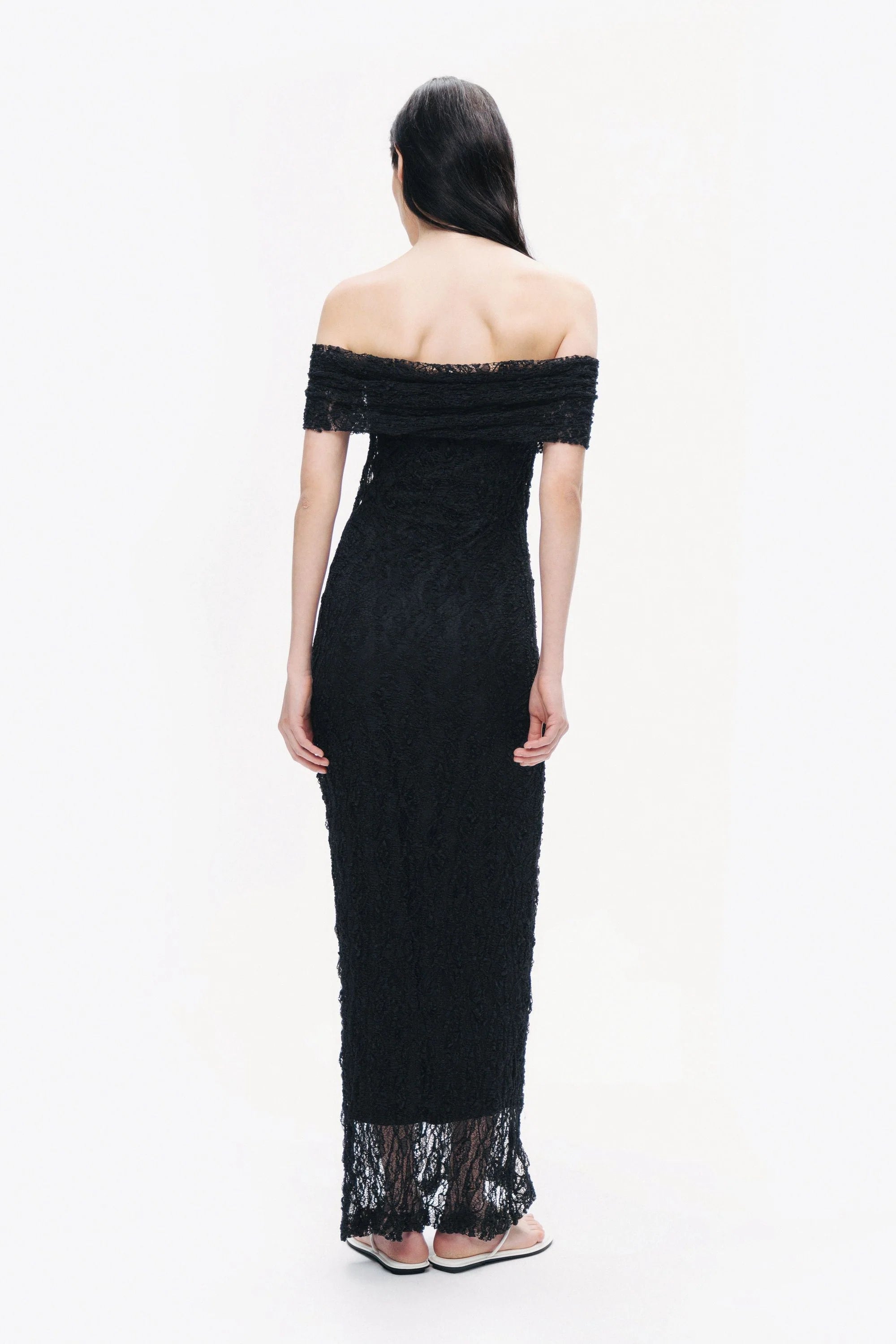 Nocturne reimagines the classic maxi dress with lace and a layered look, presenting the Off-the-Shoulder Maxi Dress...