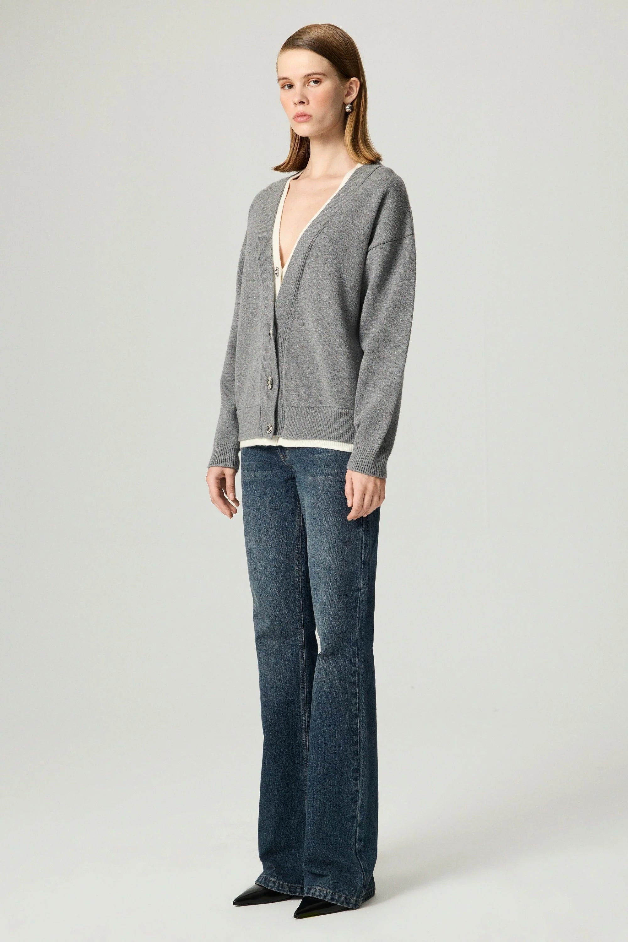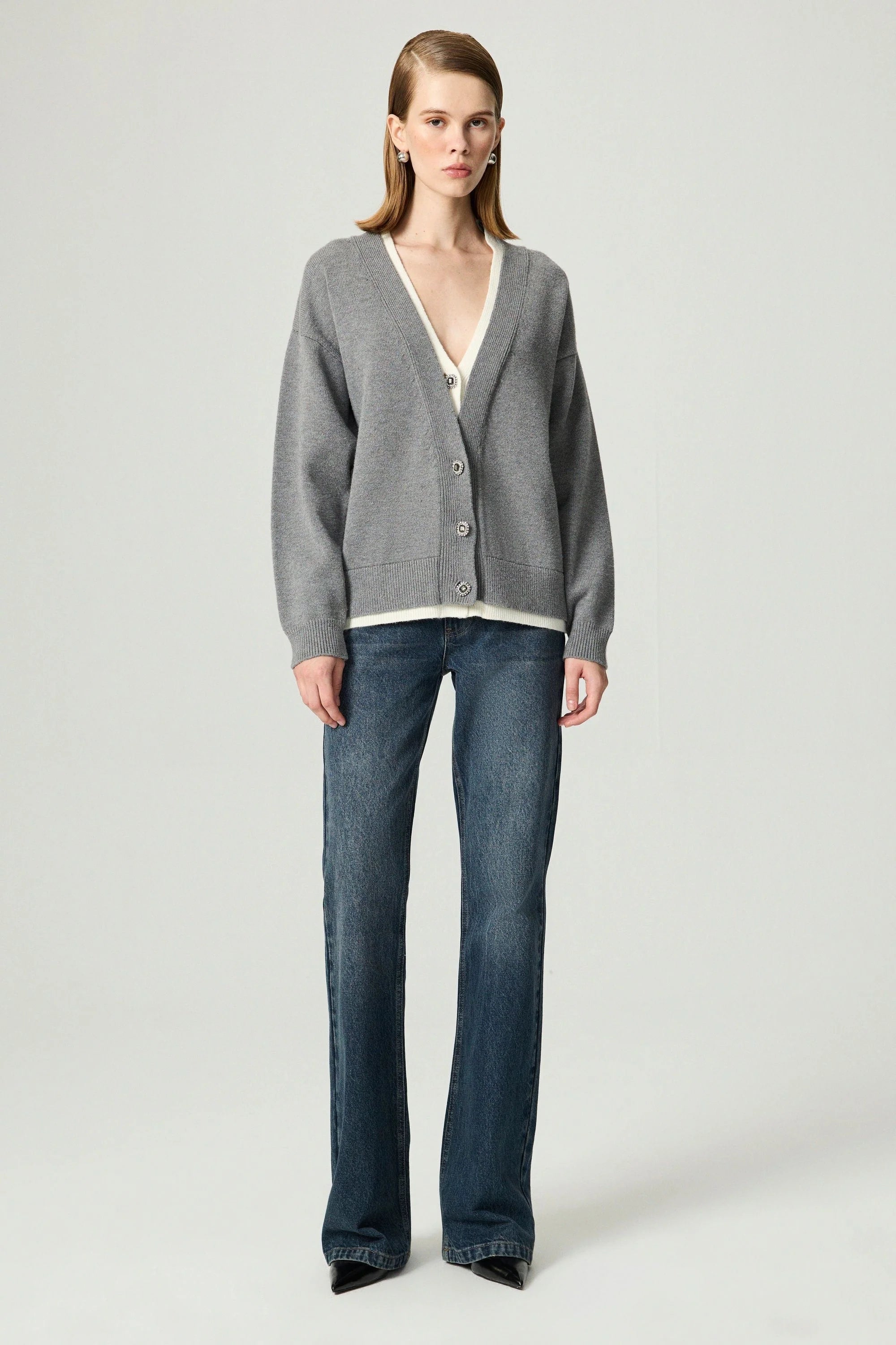 Crystal-Button V-Neck Cardigan