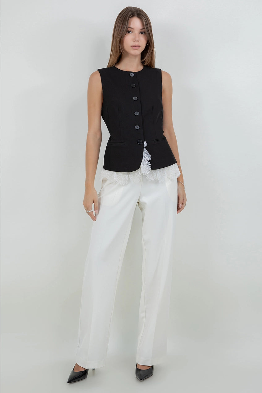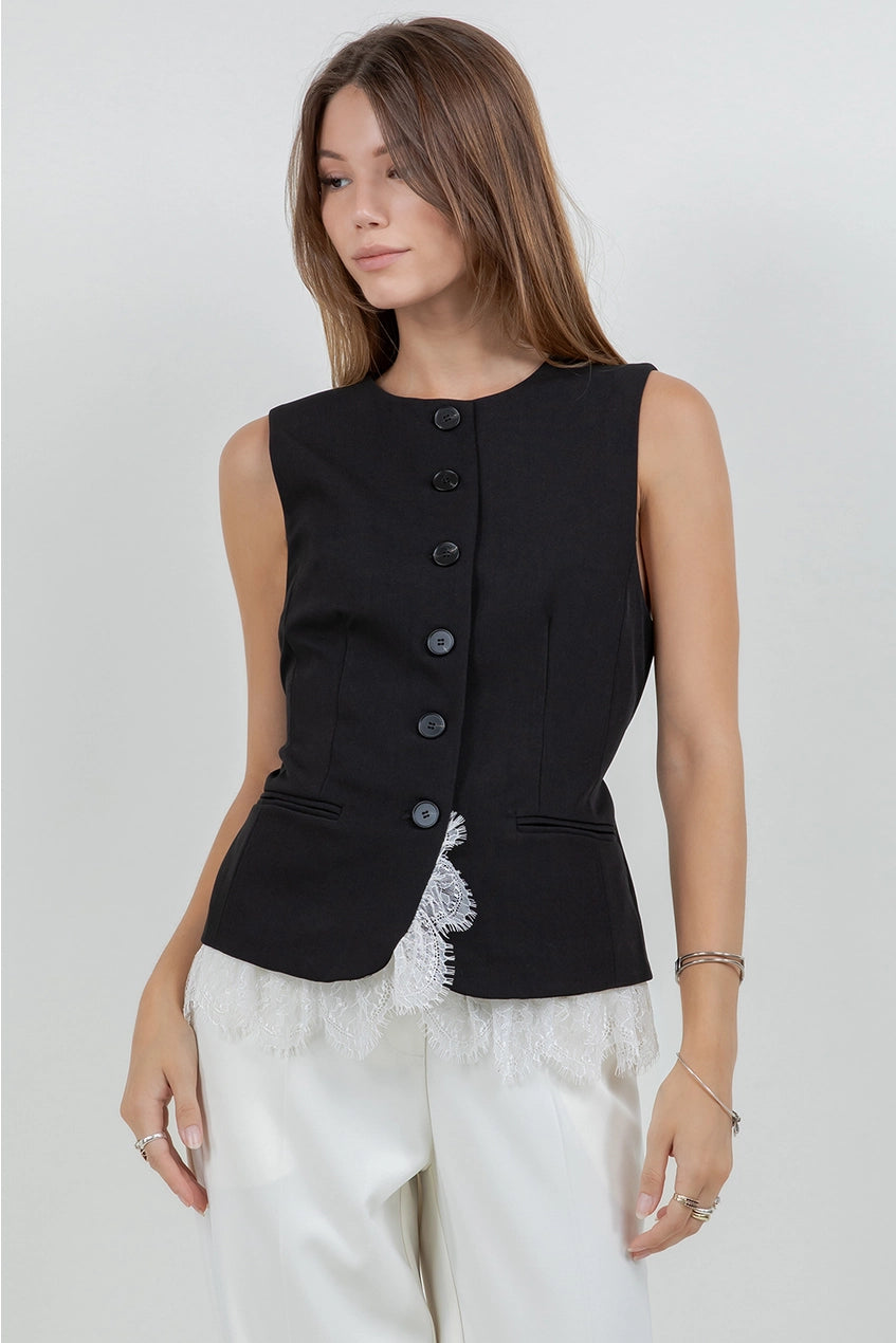 Soft woven structured vest with contrast bottom lace