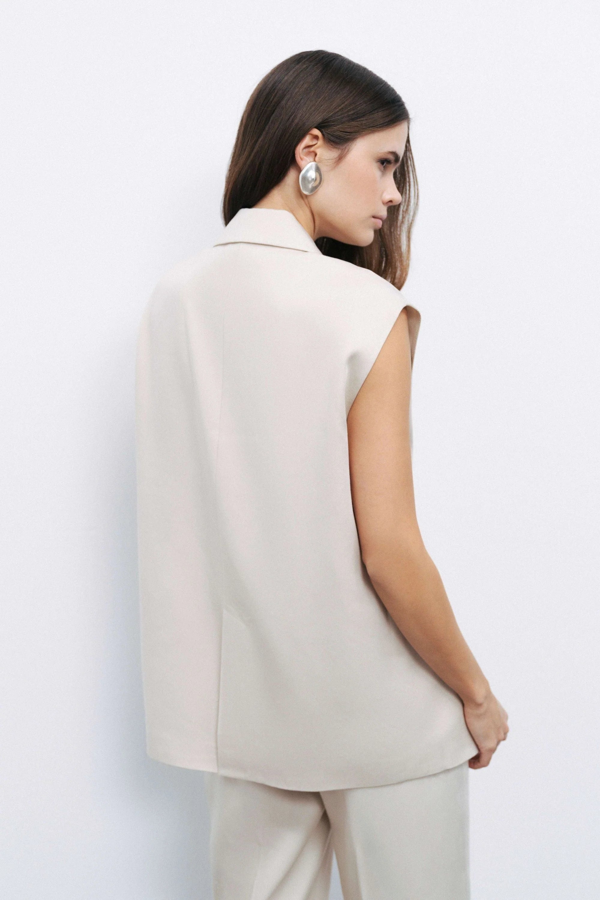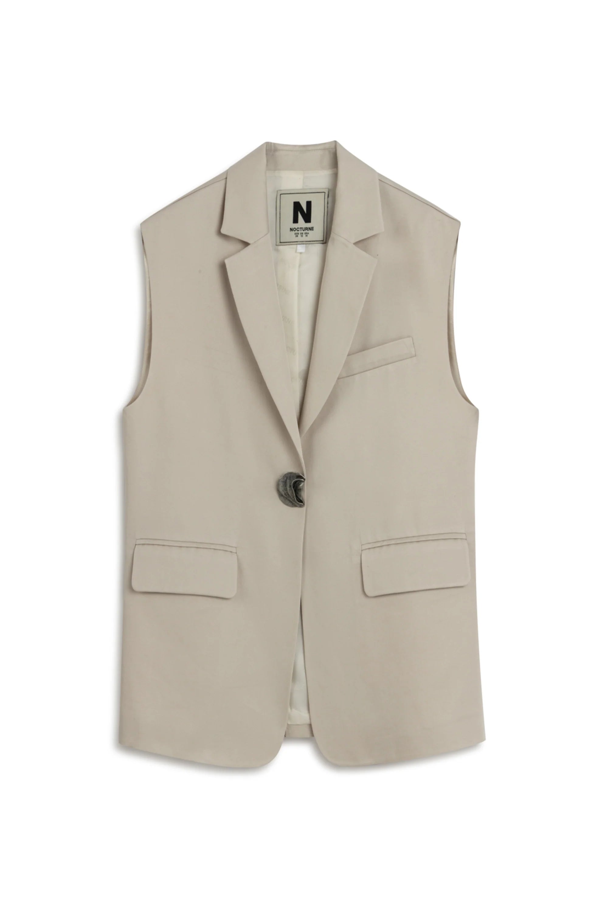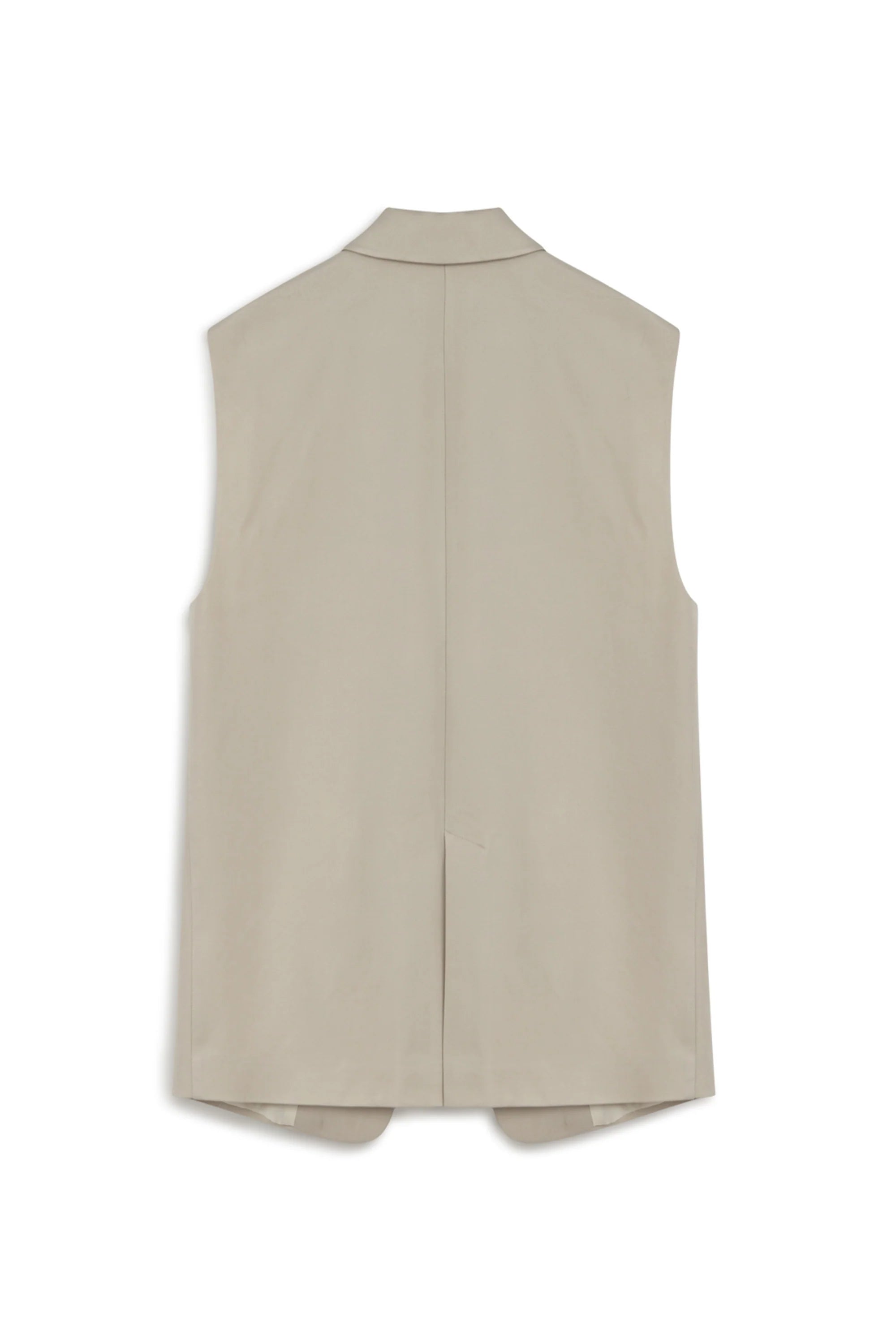 A versatile vest that combines comfort with statement details. Designed in a relaxed fit with a true-to-size cut, this piece offers effortless layering. The lined, sleeveless structure ensures ease of movement, while the snap-button closure adds practicality. Featuring flap welt pockets and non-functional chest pockets, it brings both style and structure. The layered collar enhances its modern appeal, while accessory details complete the look with a distinctive touch.