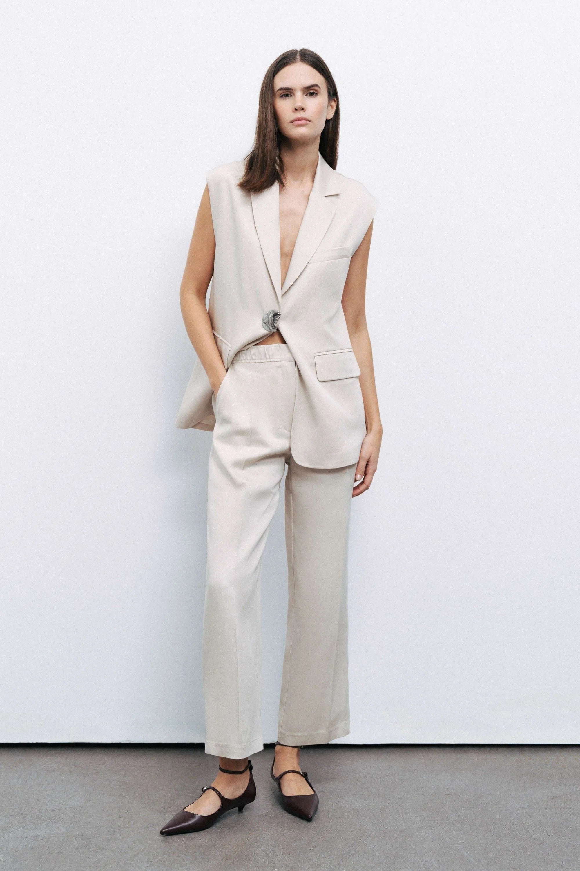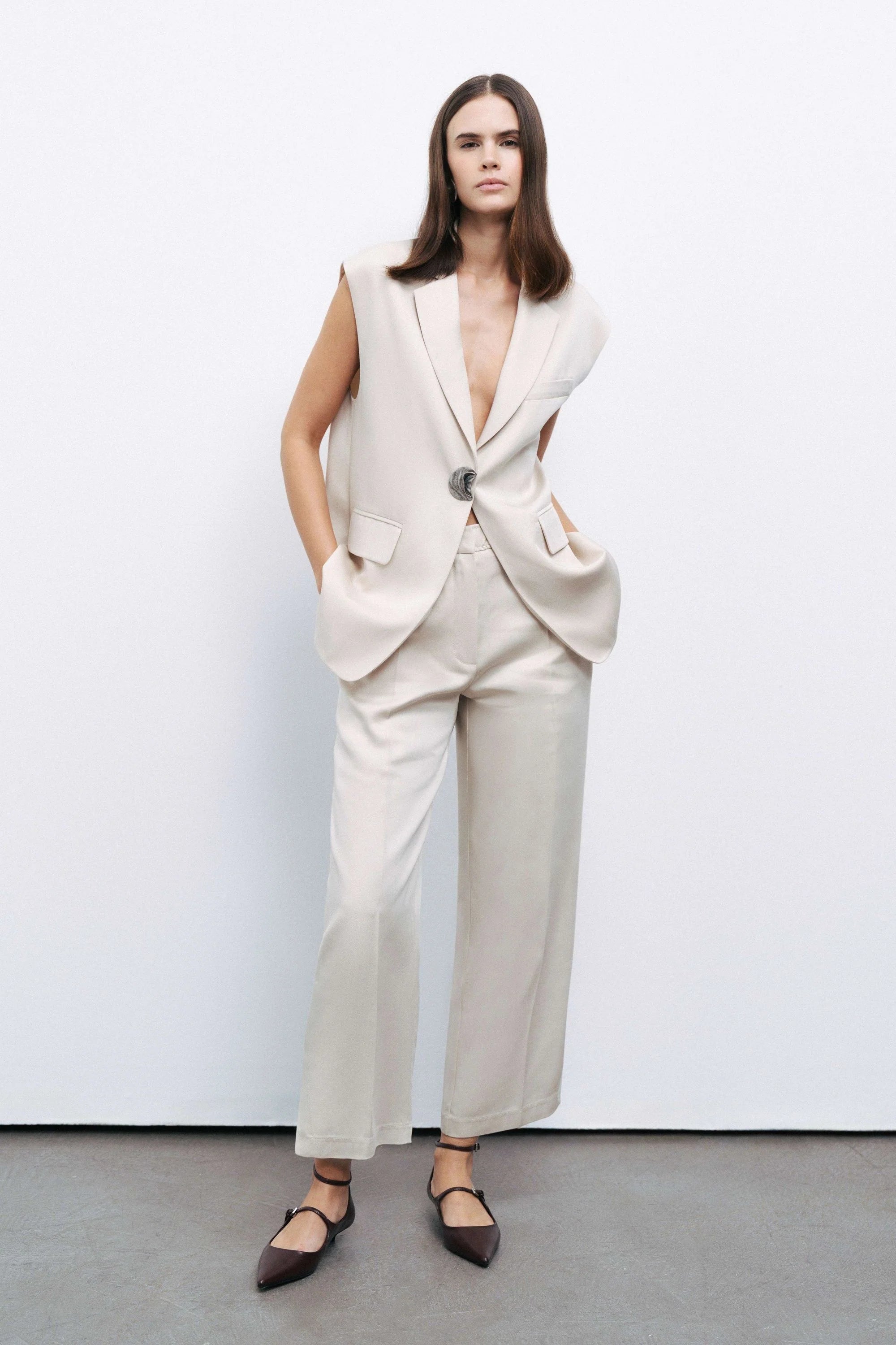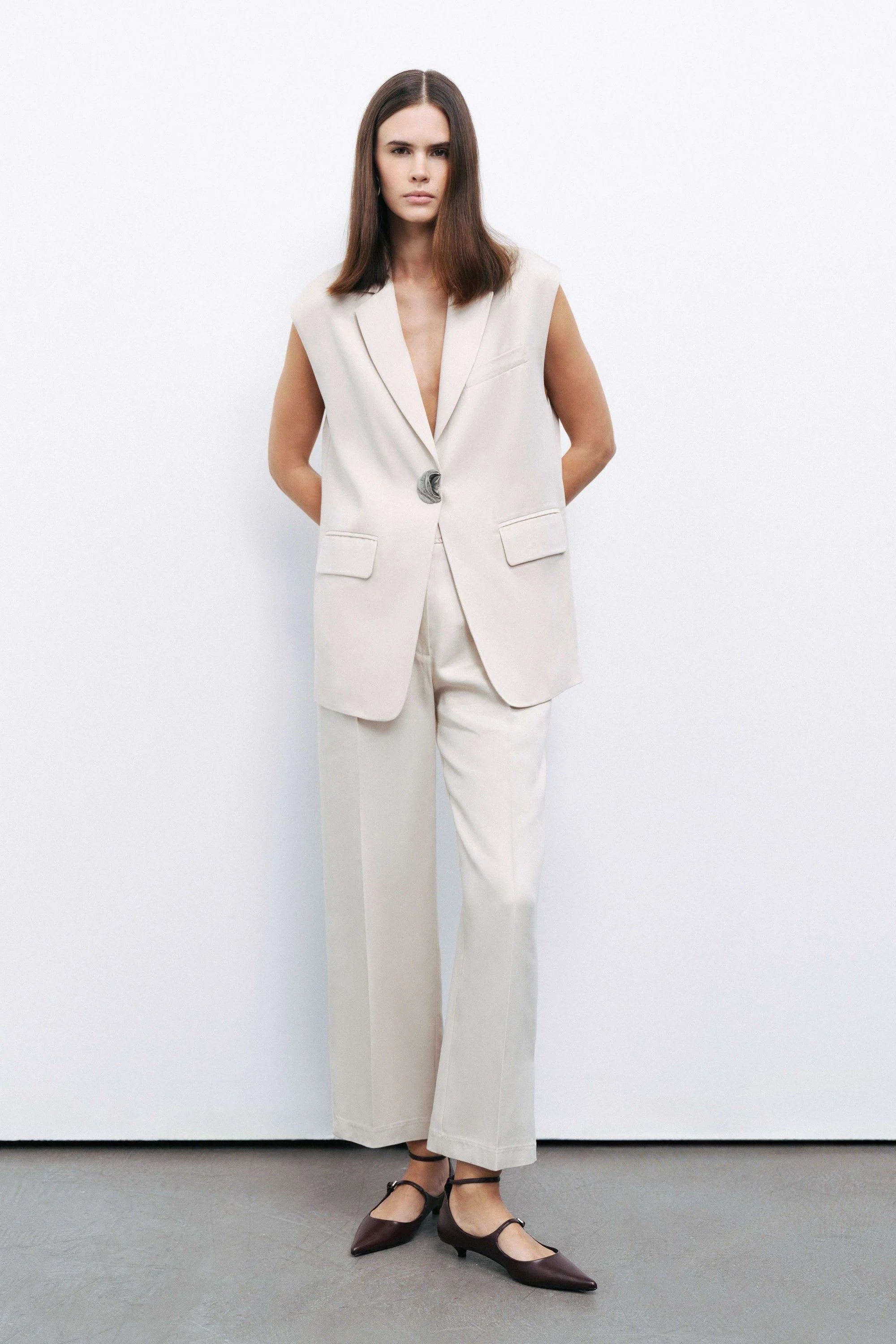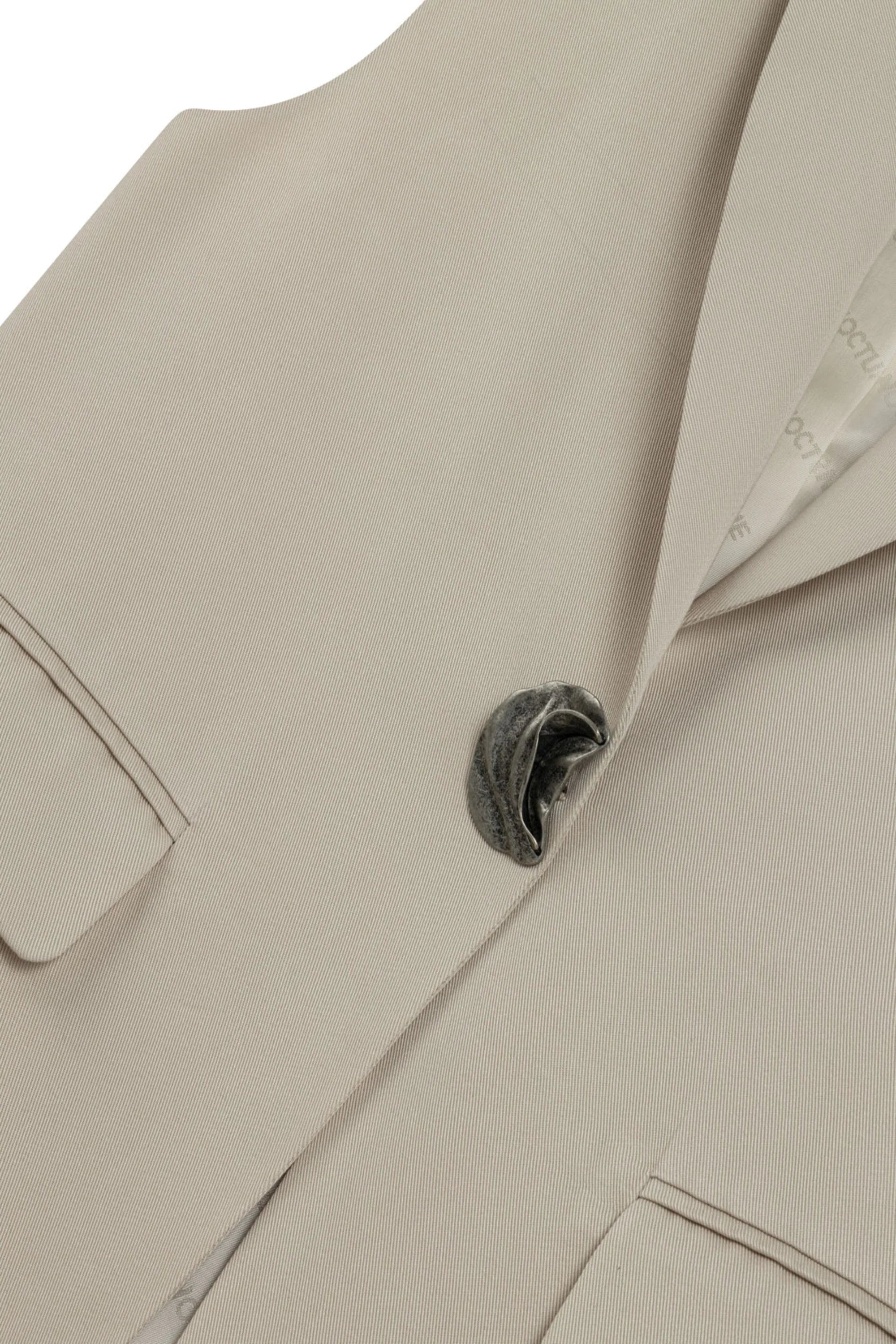 A versatile vest that combines comfort with statement details. Designed in a relaxed fit with a true-to-size cut, this piece offers effortless layering. The lined, sleeveless structure ensures ease of movement, while the snap-button closure adds practicality. Featuring flap welt pockets and non-functional chest pockets, it brings both style and structure. The layered collar enhances its modern appeal, while accessory details complete the look with a distinctive touch.