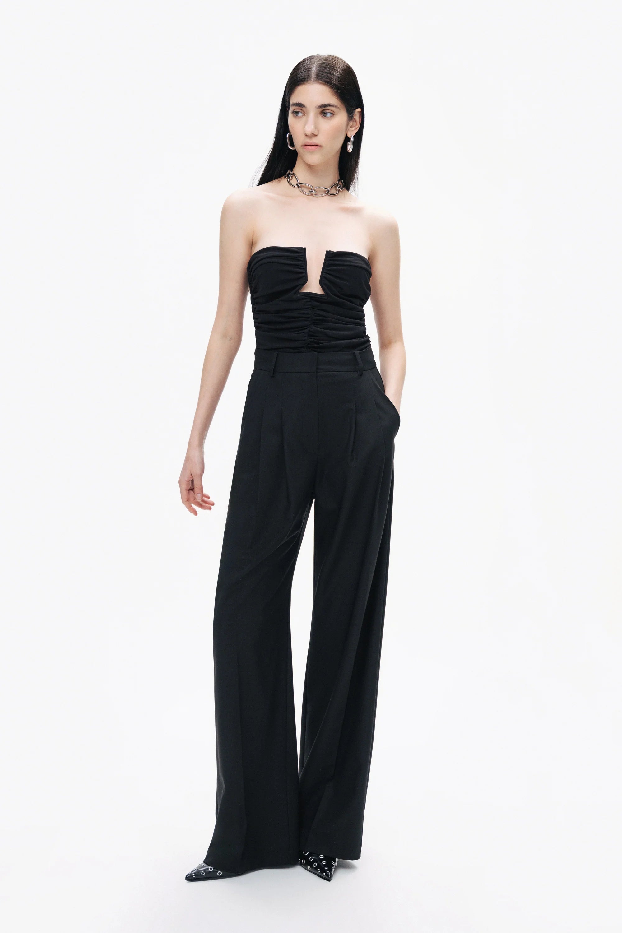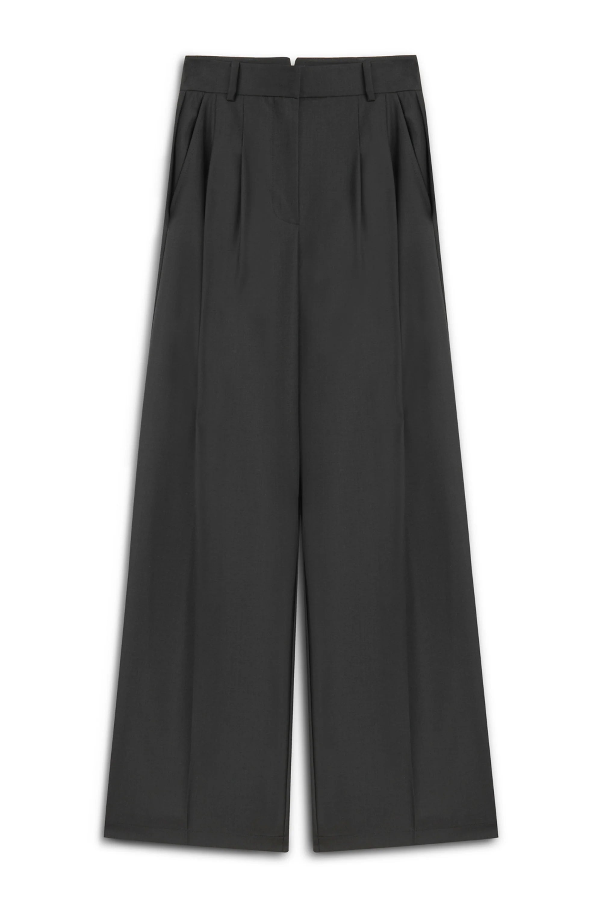 Designed for both comfort and sophistication, these relaxed-fit pants offer a true-to-size silhouette with a high-waisted design for a flattering look. The double pleats add structure and elegance, while the concealed hook-and-zip closure ensures a seamless finish. Featuring functional side pockets and non-functional back welt pockets, these unlined pants are a versatile staple for effortless day-to-night styling.