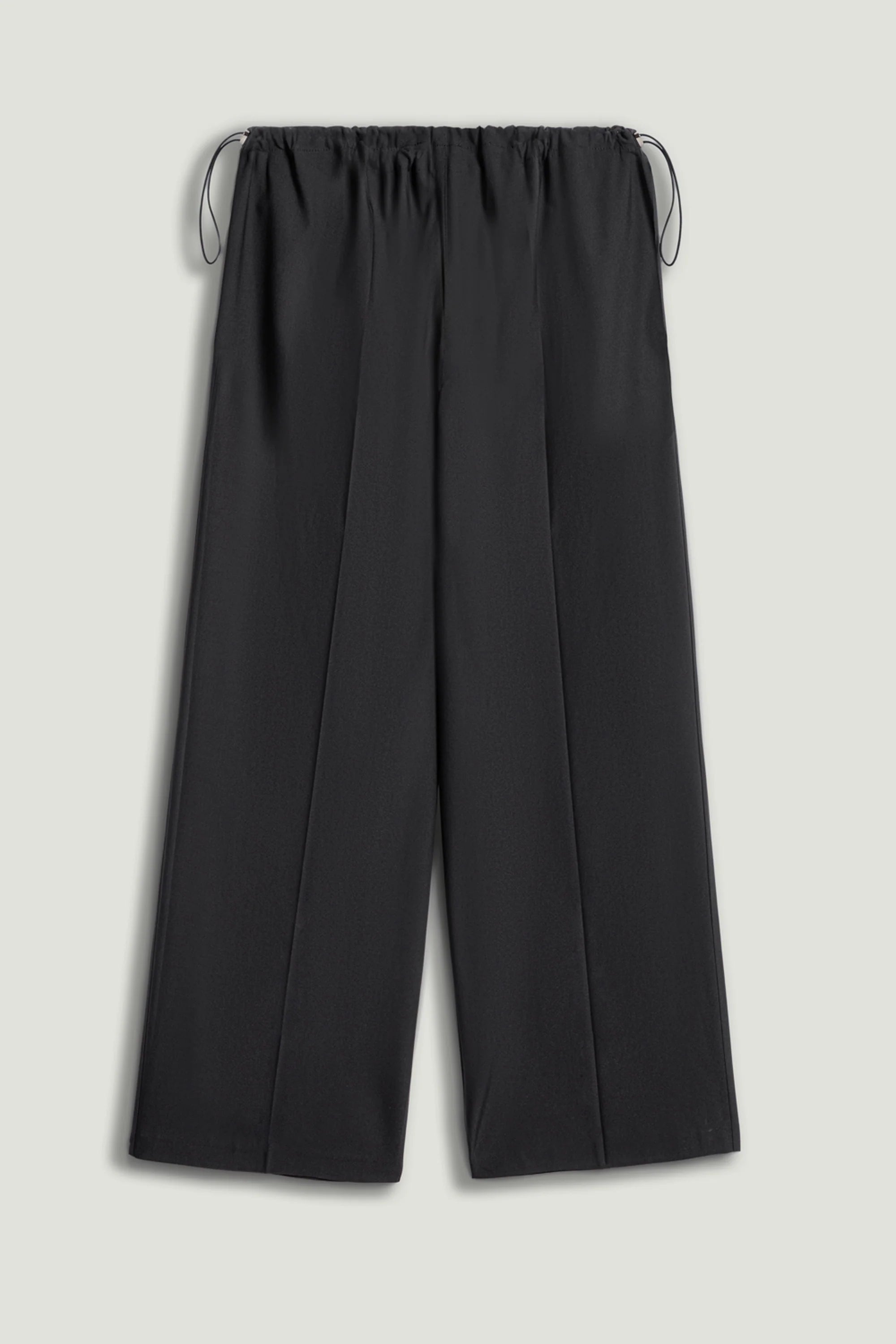 These relaxed-fit drawstring pants are your go-to for effortless style and comfort. Designed with a mid-rise elasticated waistband and adjustable drawstring, they offer a customizable fit for all-day ease. The wide-leg silhouette and full-length cut create a fluid, elongated shape, while side seam pockets add everyday practicality. Whether paired with a structured blazer or an oversized knit, these trousers bring laid-back sophistication to any look.