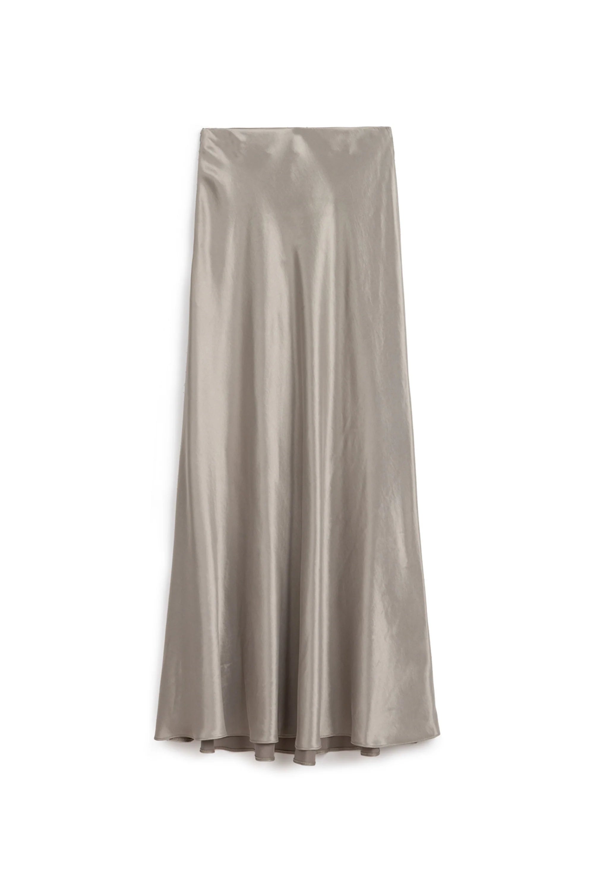 A timeless and elegant staple, this relaxed-fit midi skirt offers a true-to-size silhouette with a sleek satin-look finish. Designed with a normal waist, it provides a flattering and effortless drape. The concealed side zipper closure ensures a smooth and seamless fit, while the unlined construction keeps it lightweight and fluid. Perfect for both casual and elevated styling, this skirt adds a touch of sophistication to any wardrobe.
