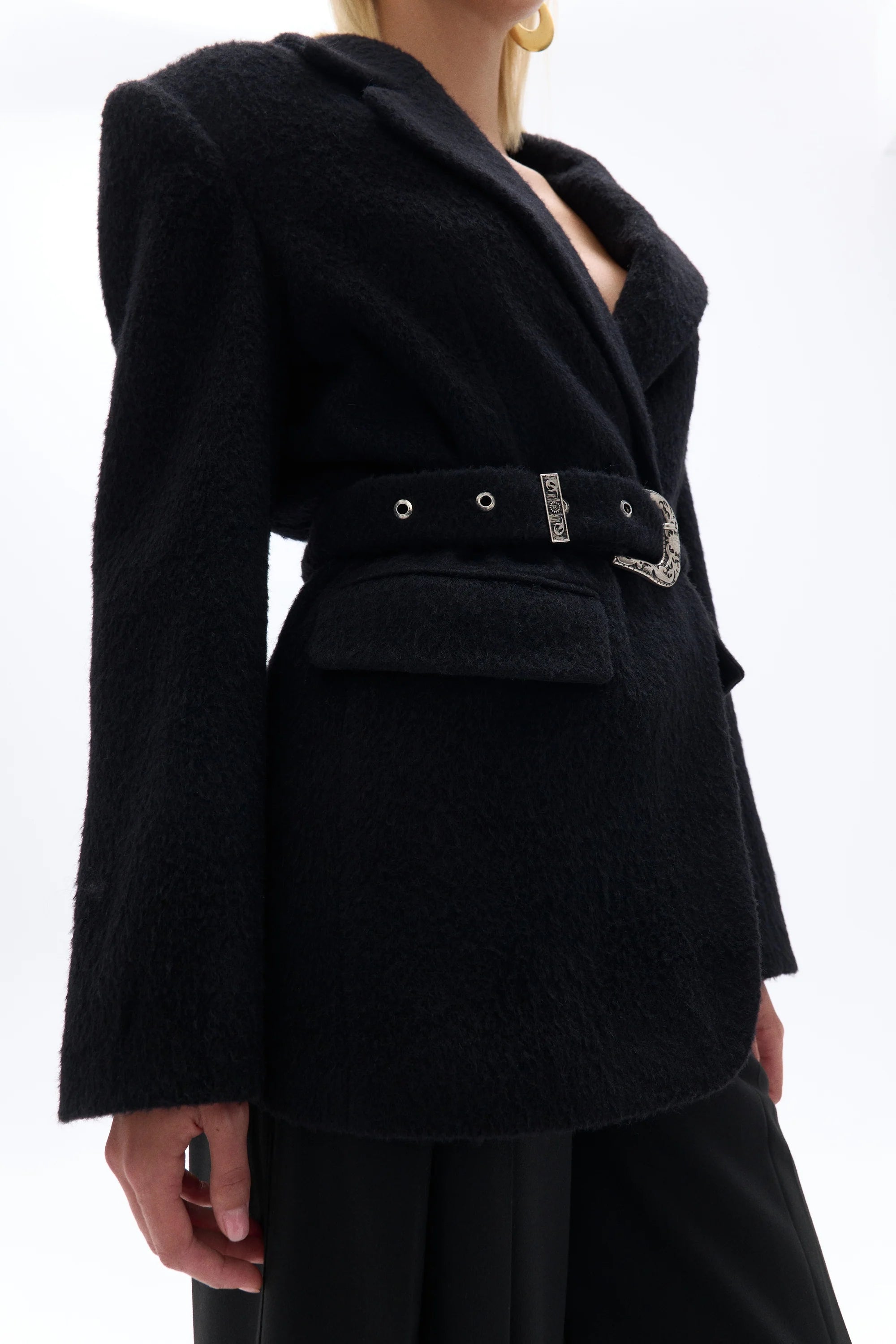 Navigate your day with comfort in this sleek jacket adorned with belt detail. It features a regular...