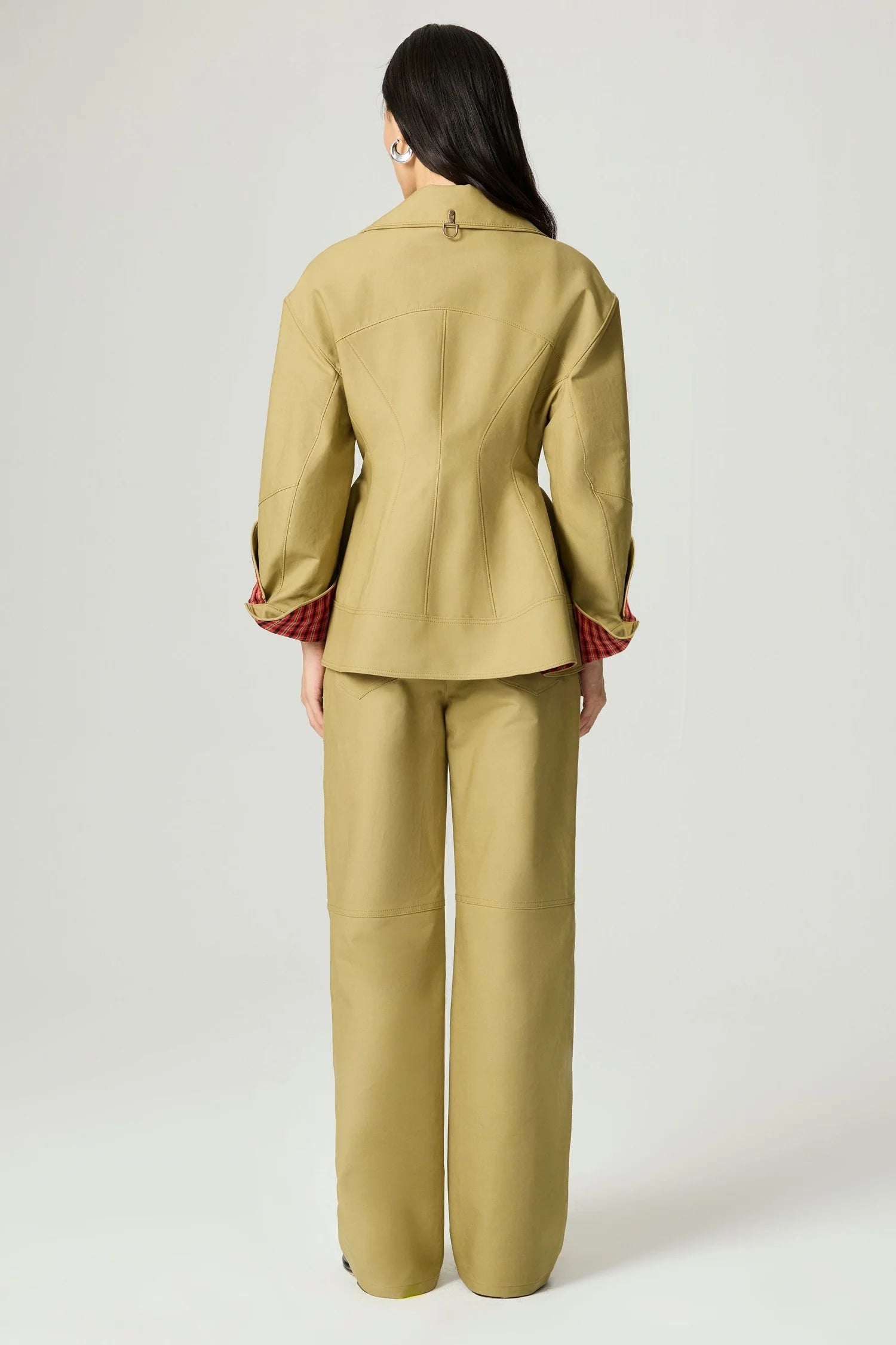 Tailored for a sculpted silhouette, this statement jacket features a defined waist and wide collar for a...