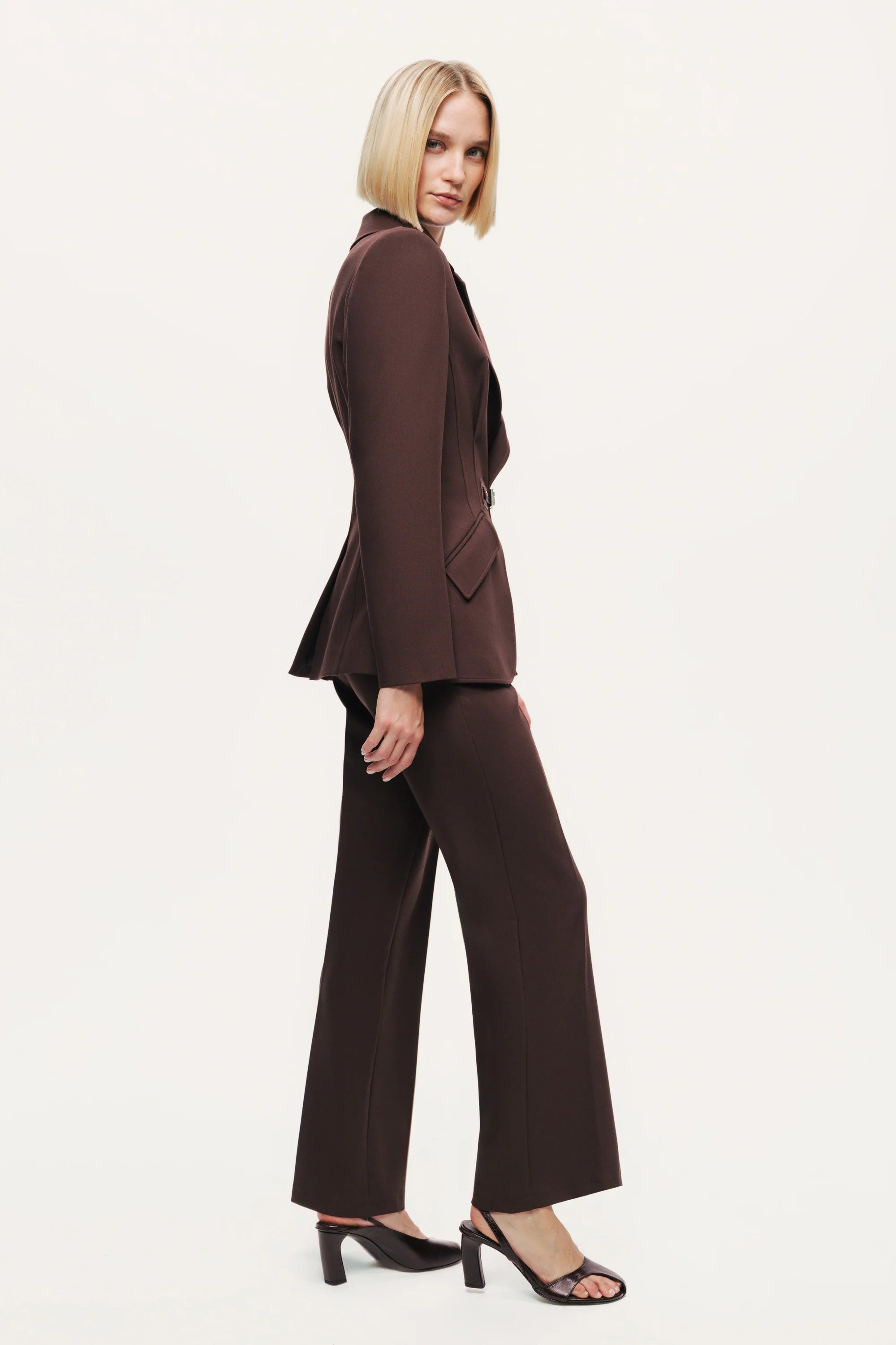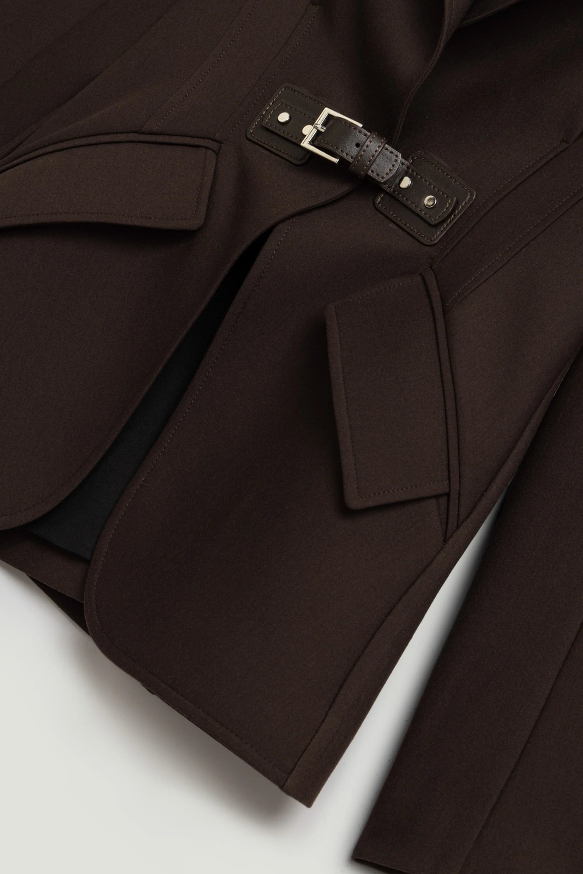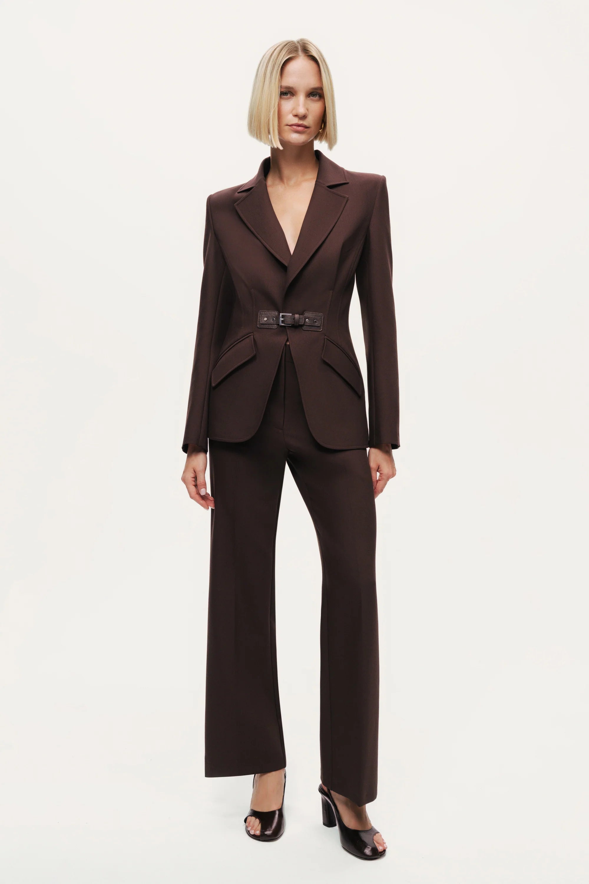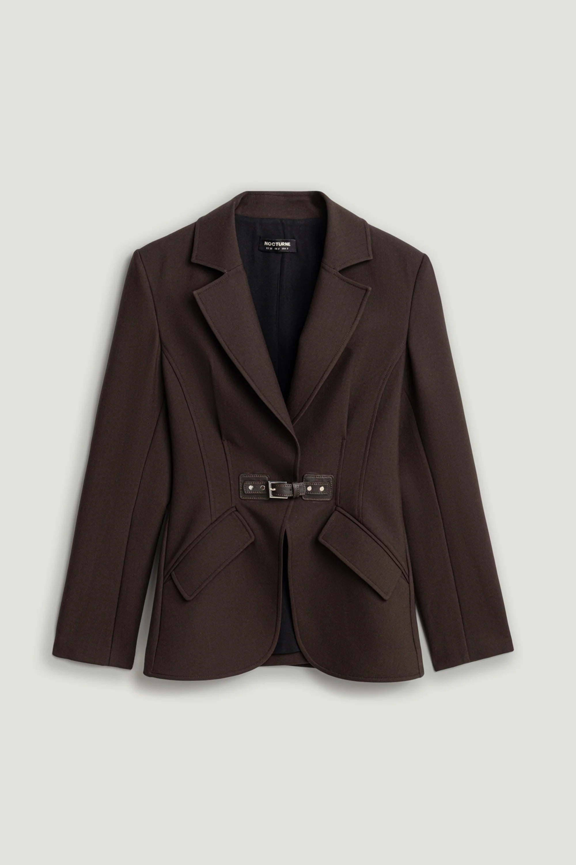 Refine your wardrobe with this belted tailored blazer, a structured yet feminine essential. Designed in a regular fit with a classic notched lapel and single-breasted front, it features flap pockets and a waist-cinching belt with a metal buckle for added shape and polish. The back vent ensures ease of movement, while the full lining enhances comfort. Ideal for office looks or powerfully pulled-together evenings.