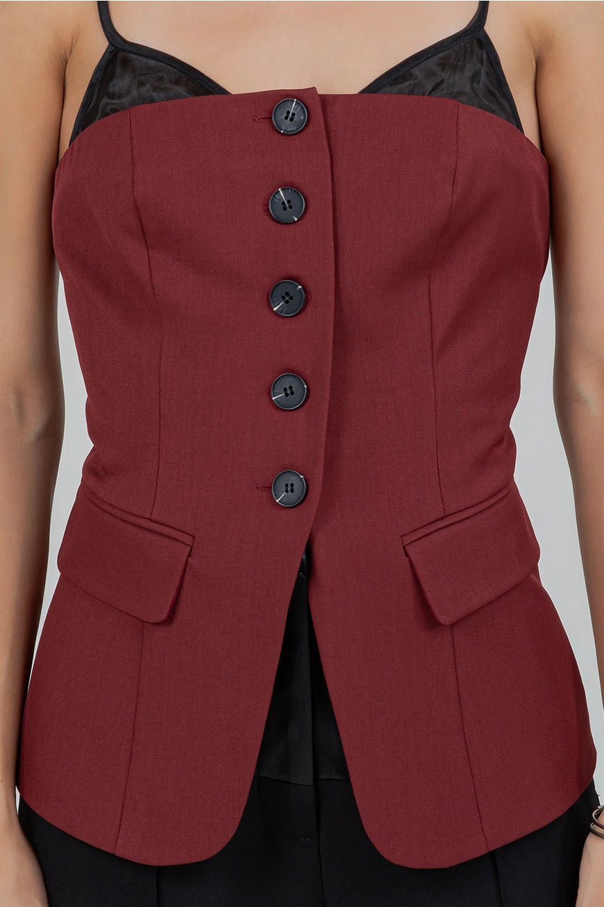 Contrast + Soft Woven Combo Button Down Vest Top