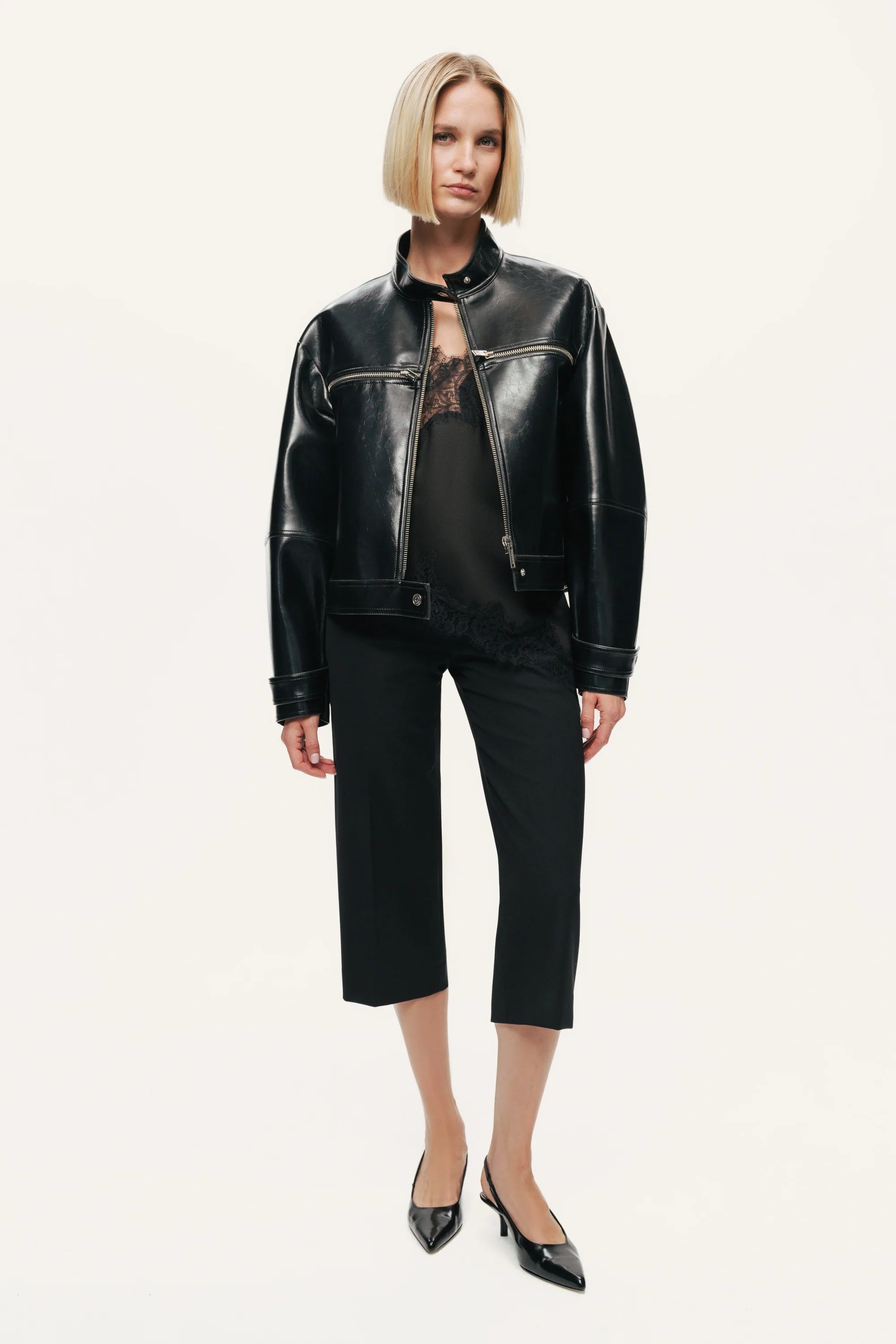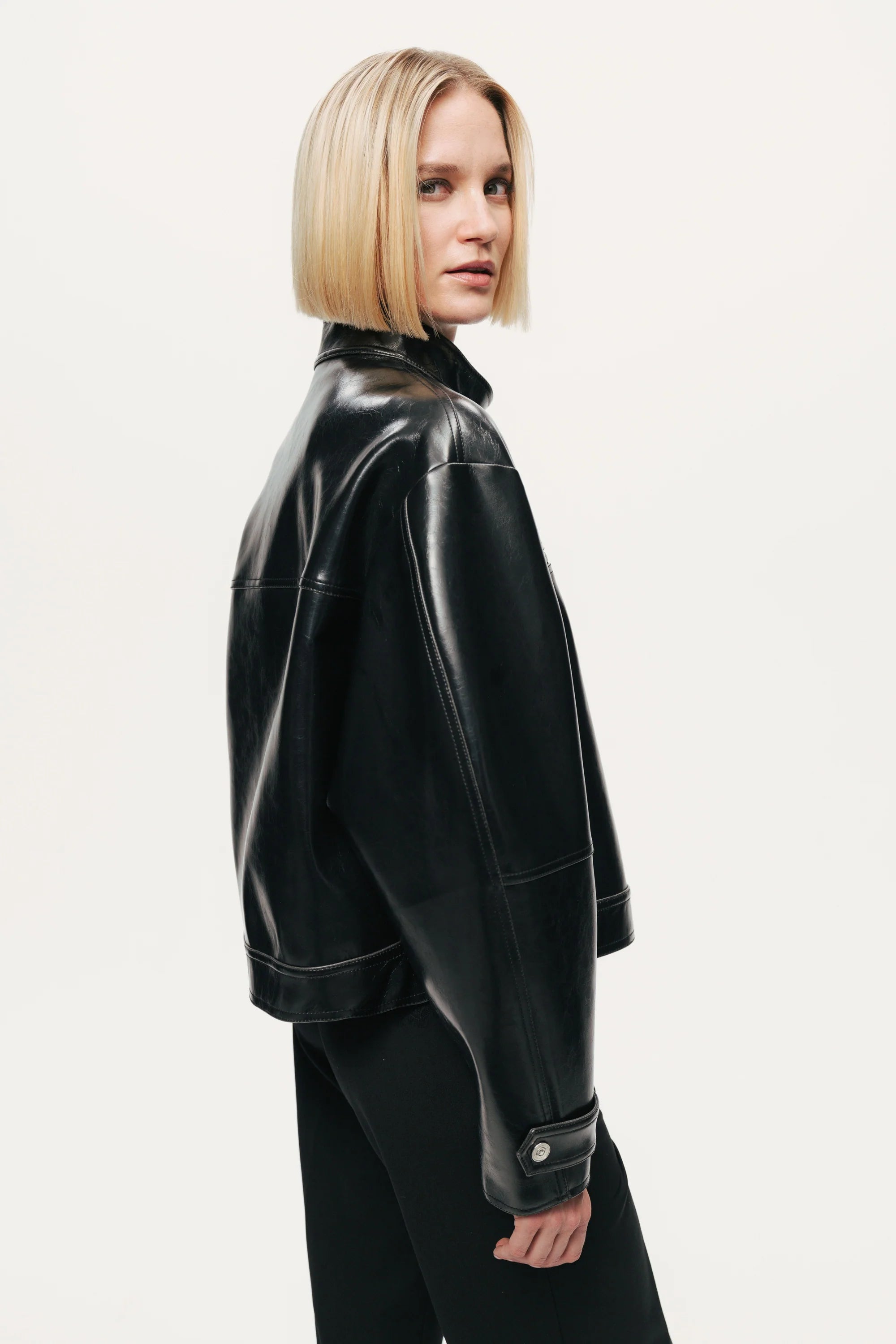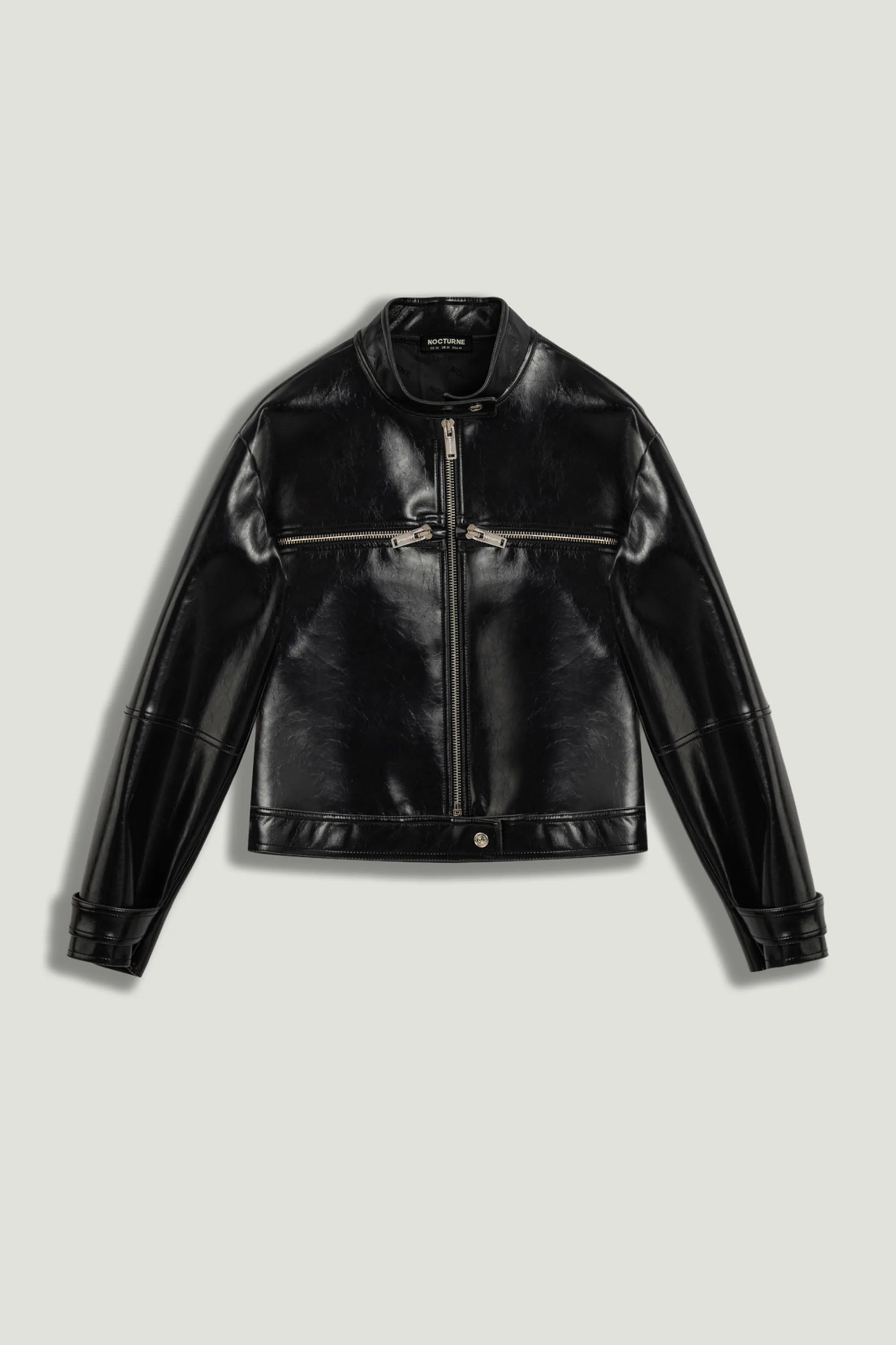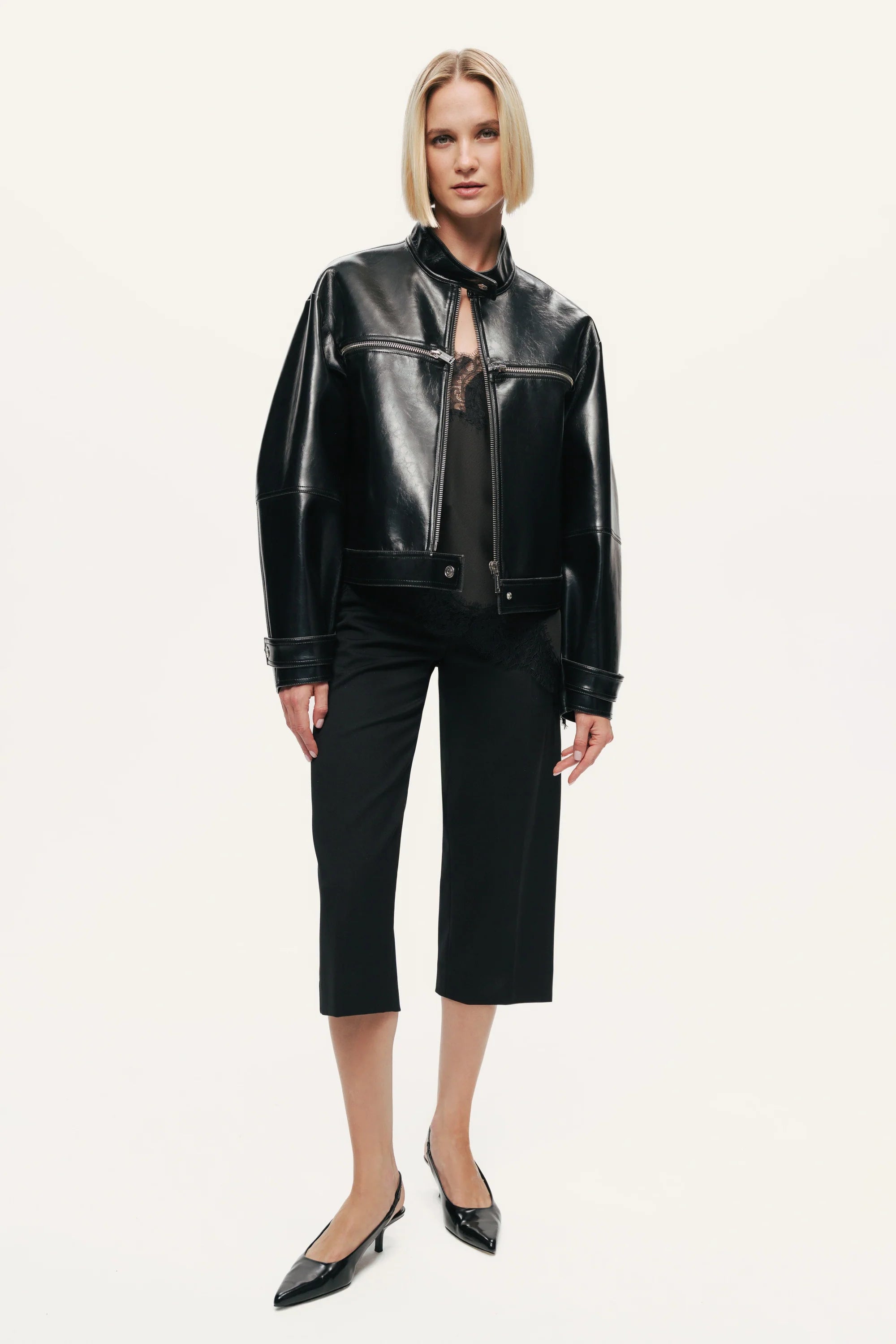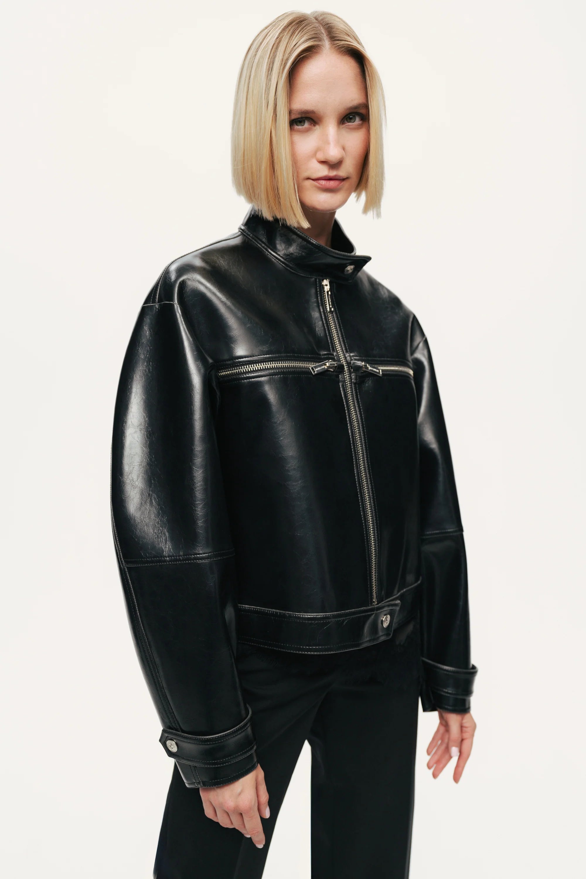 Amp up your cool-girl energy with this cropped faux leather biker jacket — the ultimate outerwear for...