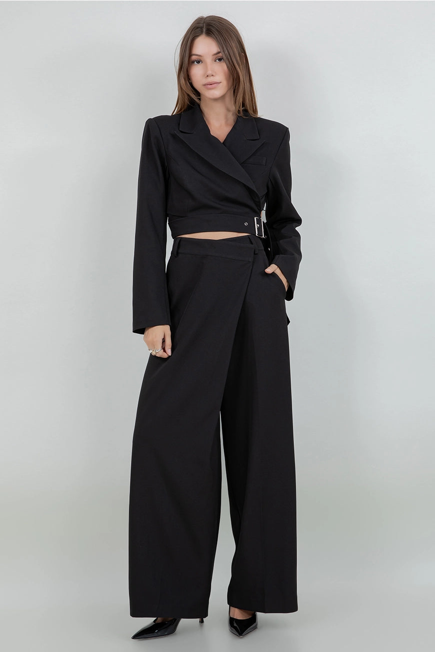 Cropped Structured Woven Blazer W Self Wrap Belt