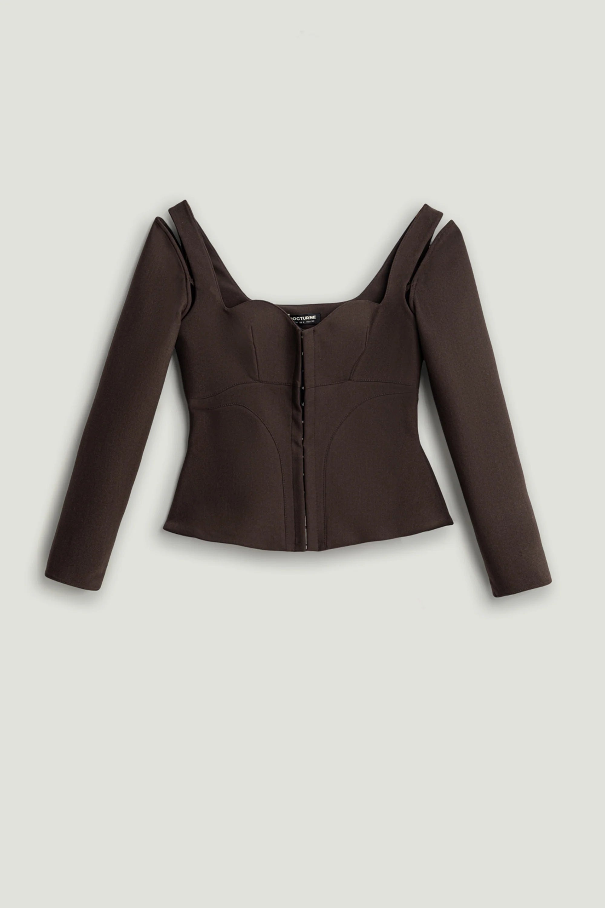 Make an unforgettable statement with this structured corset-style top, tailored in a slim fit with a bold...