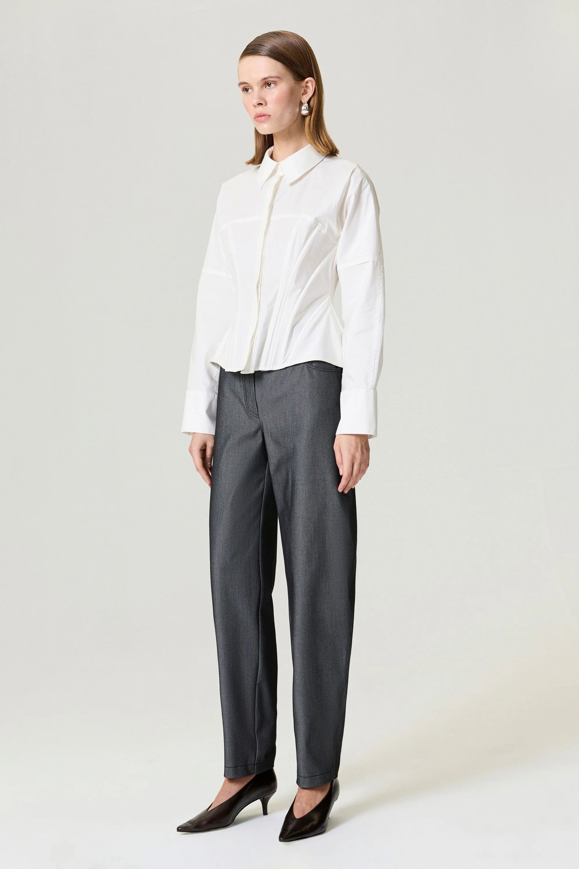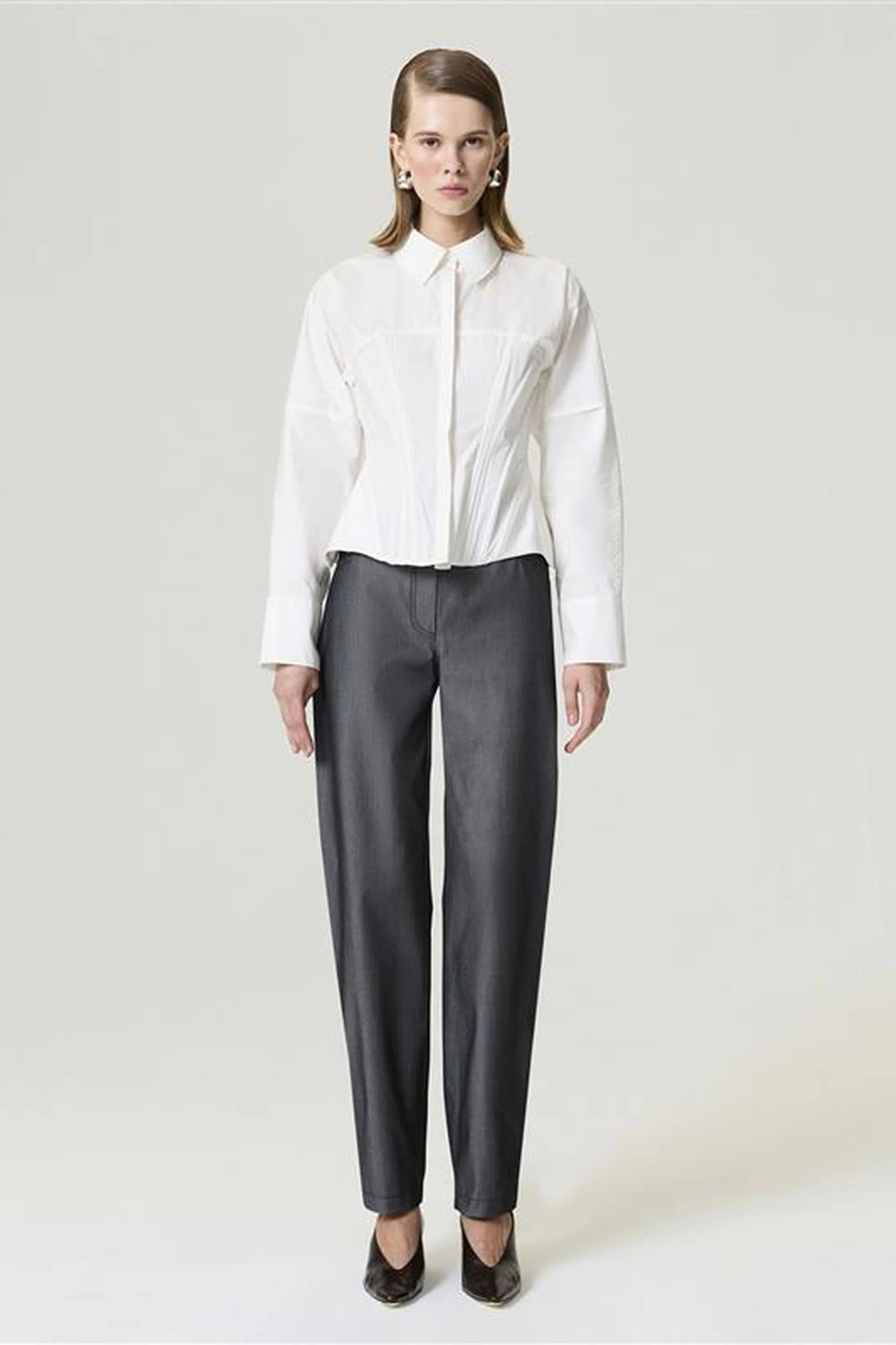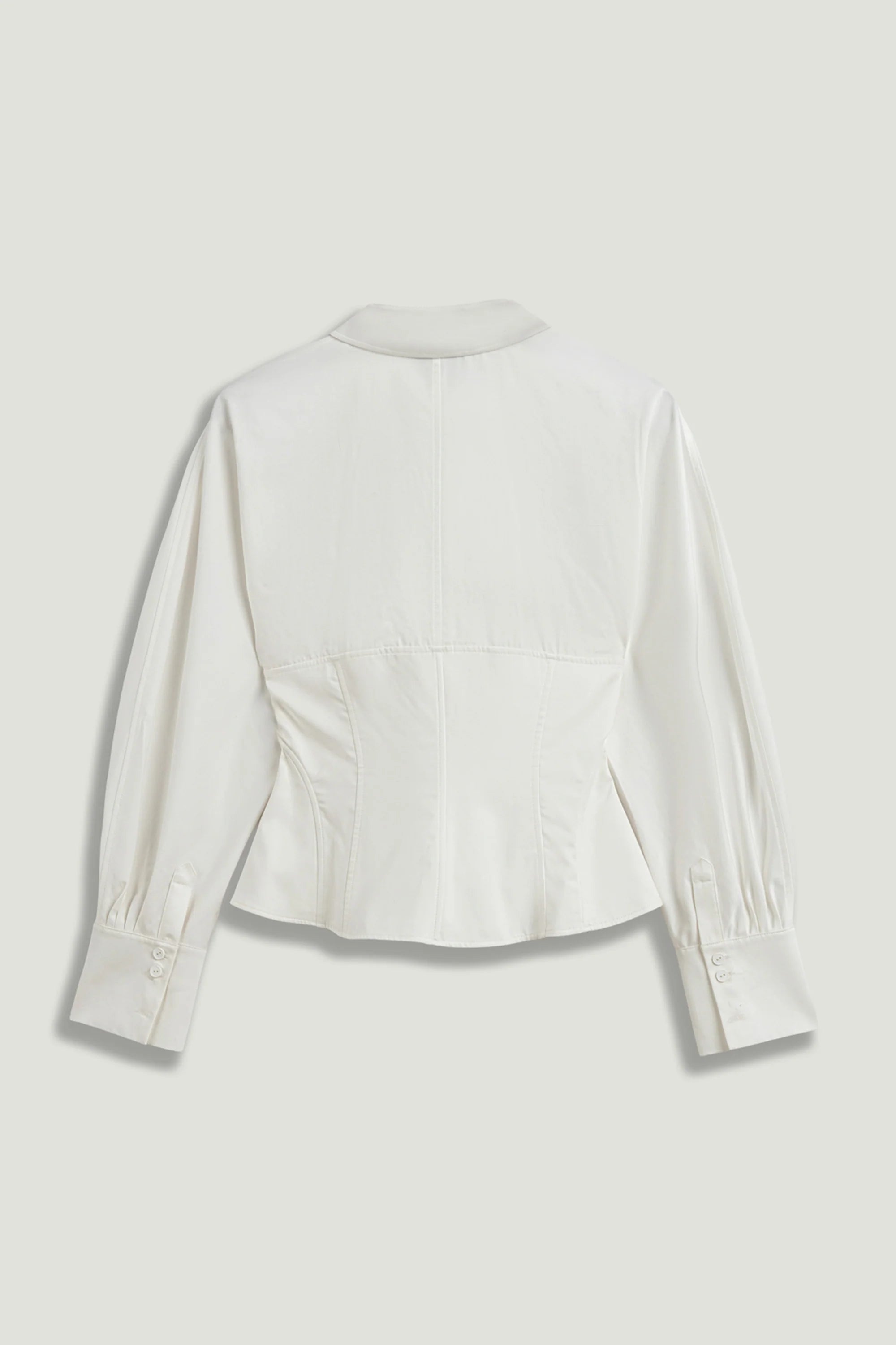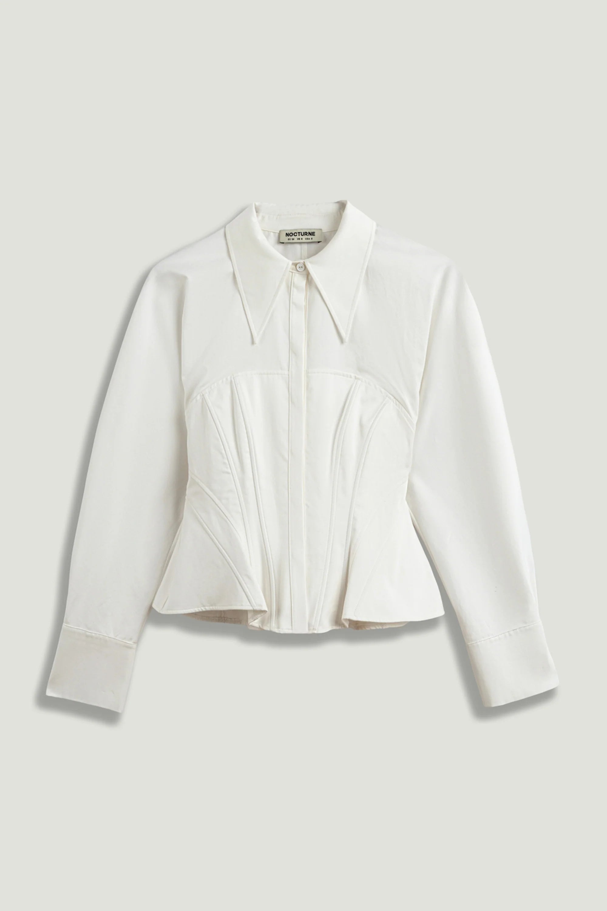 Bring modern elegance to your wardrobe with the Structured Corset-Inspired Shirt. Crafted from crisp woven fabric, this long-sleeved...