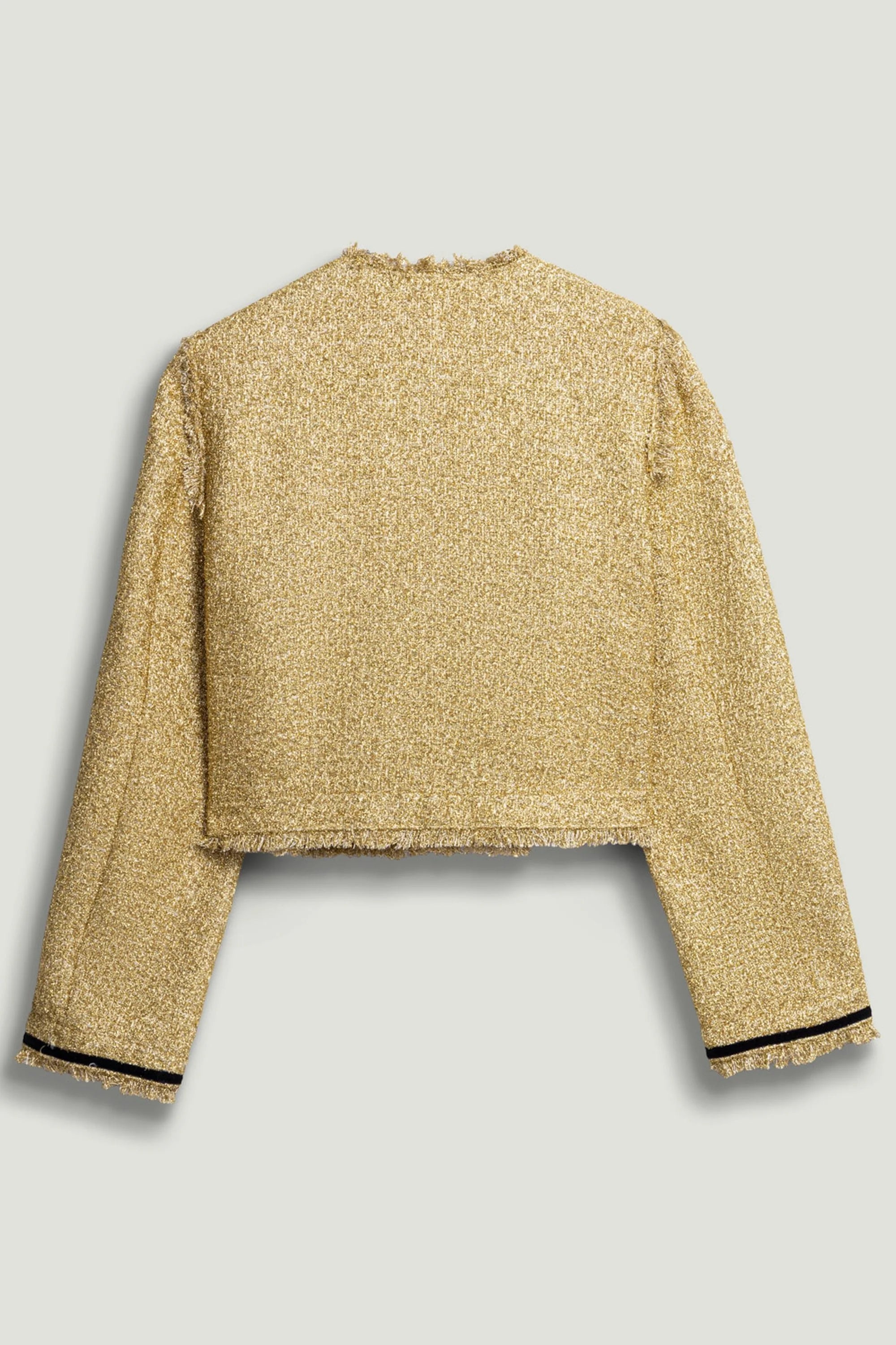 Chic and refined, this cropped jacket is crafted from textured woven fabric for a rich, elevated look....